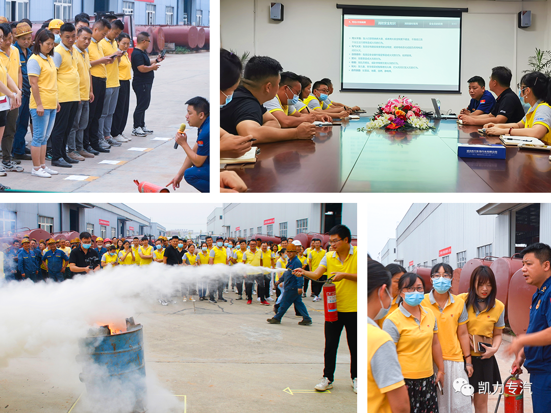 凱力專汽特邀隨州市高新區(qū)消防大隊到公司開展消防演練培訓(xùn)。